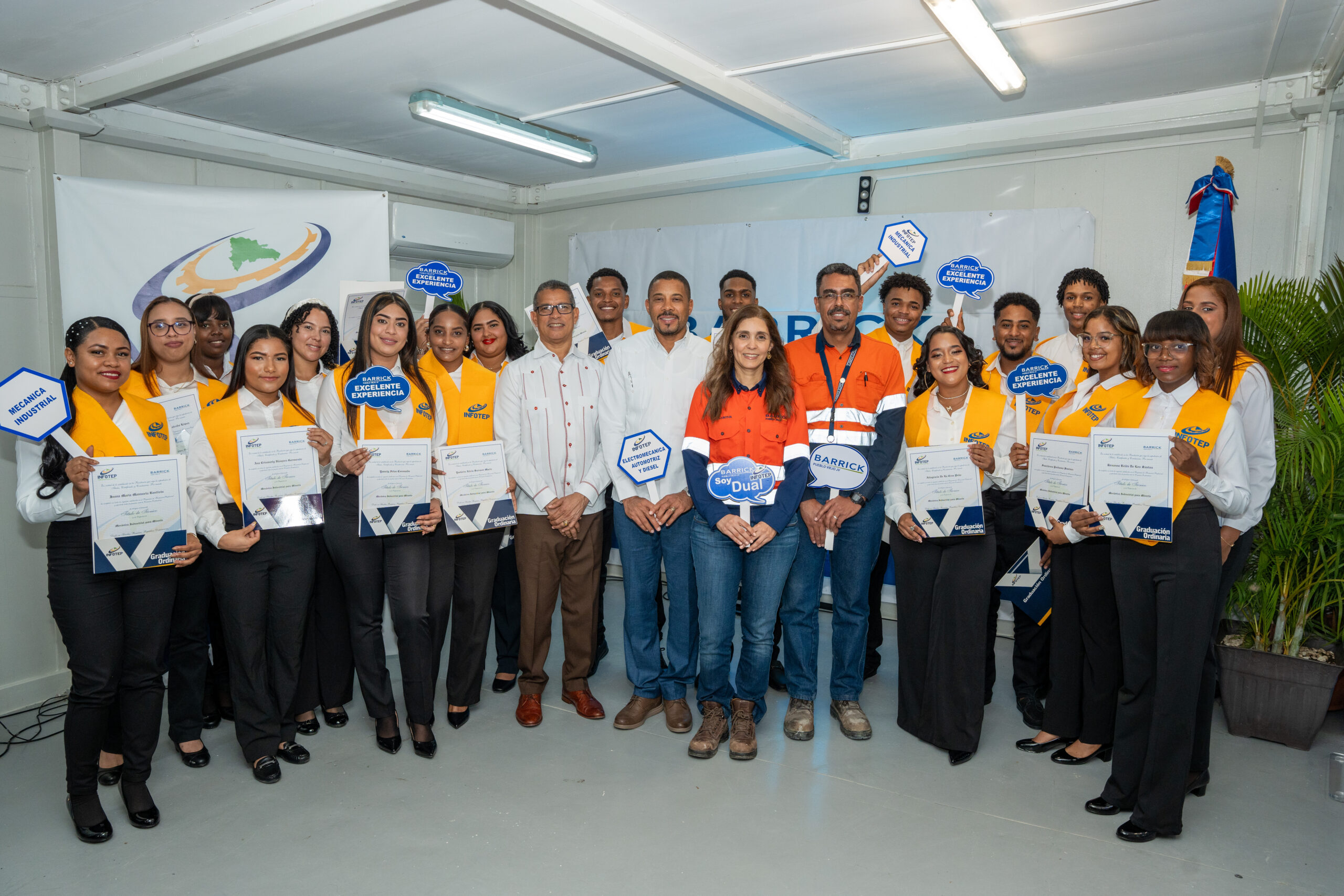 El Programa de Aprendices, una alianza entre Barrick e INFOTEP, que ya ha graduado a 257 jóvenes desde su inicio en 2014, formando técnicos especializados para la minería en las comunidades cercanas a la mina