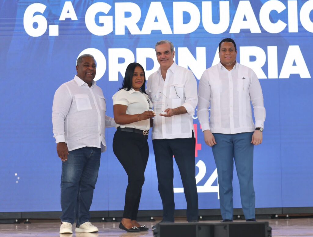 Posteriormente, el presidente Abinader encabezó la sexta graduación ordinaria del Programa Oportunidad 14-24, en el Auditorio Antonio Méndez del Centro UASD-Barahona, donde 1,645 jóvenes provenientes de las provincias Bahoruco, Barahona, Independencia, Pedernales, Azua, Elías Piña y San Juan recibieron sus certificados de formación técnico profesional.